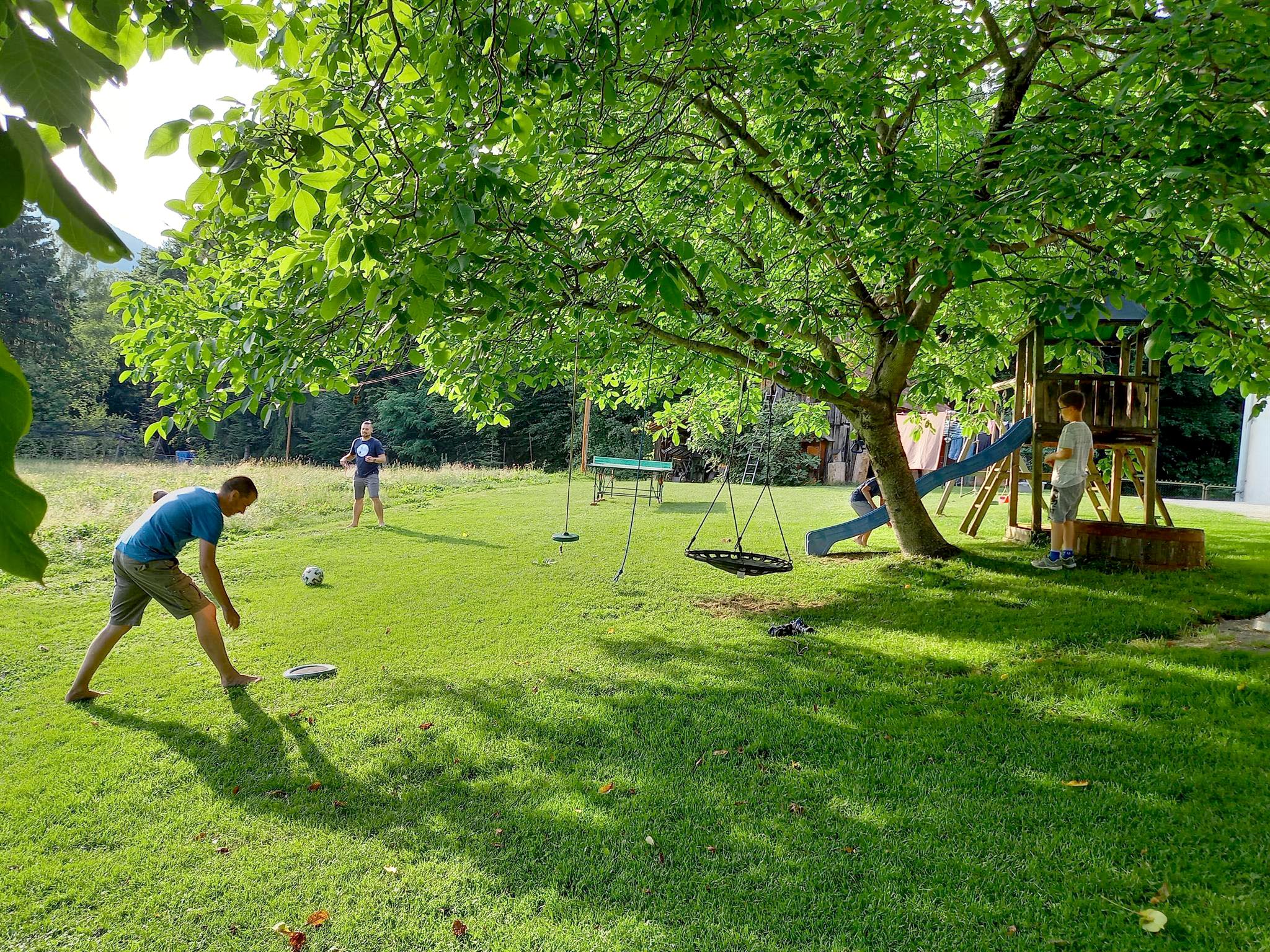 Spielplatz und Spielwiese, Grillplatz und Lagerfeuerromantik machen unser Haus zu einem Wohlfühlort für Jung und Alt.